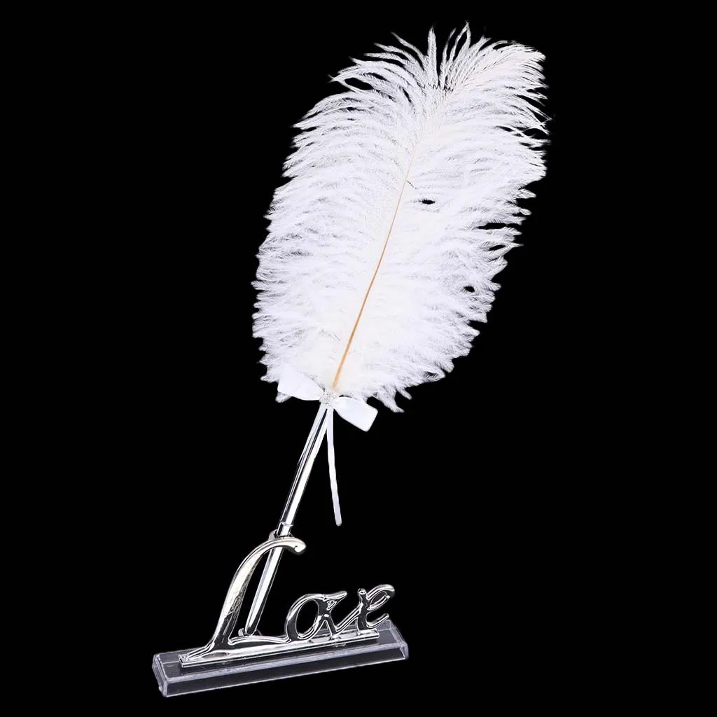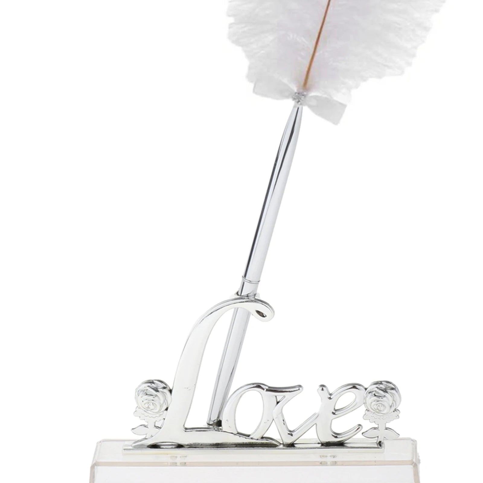 Wedding White Feather Quill Pen Set with "Love" Holder Guest Book Signing Pen And Holder for Wedding Decorations